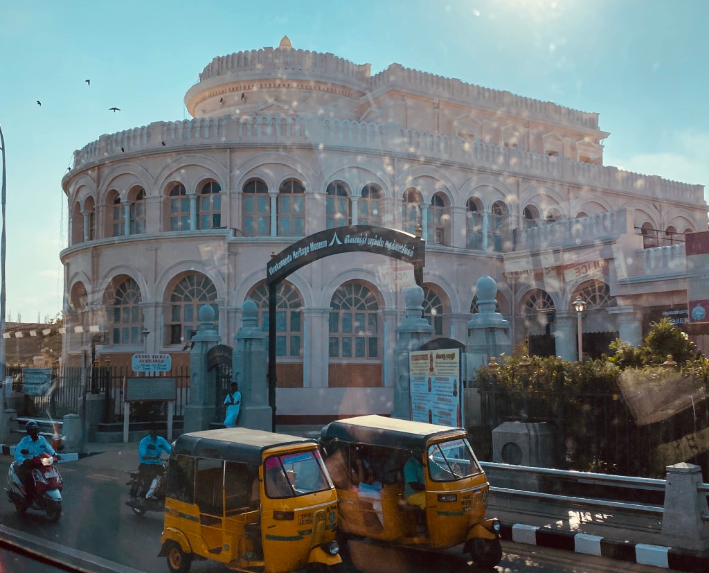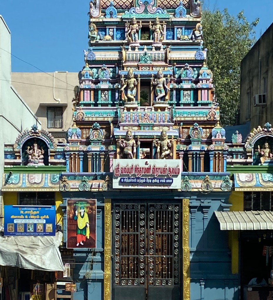 Vimos de lejos Marina Beach, la playa natural más grande de la India, tiene 13 kilómetros de largo. También nos mostraron un área comercial donde el dicho es que “Se puede encontrar todo excepto padre y madre“ Por las calles, en pequeñas plazas hay muchas estatuas de personajes importantes para la ciudad y el estado. Muchas de las estatuas son doradas, algunas están adornadas con guirnaldas.