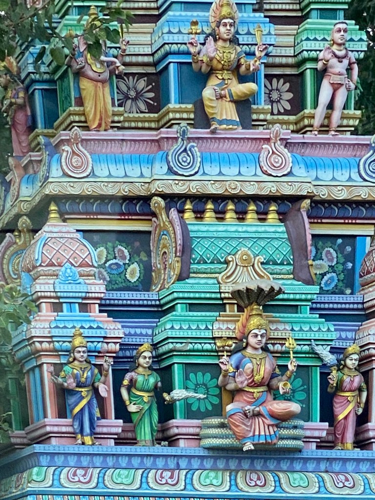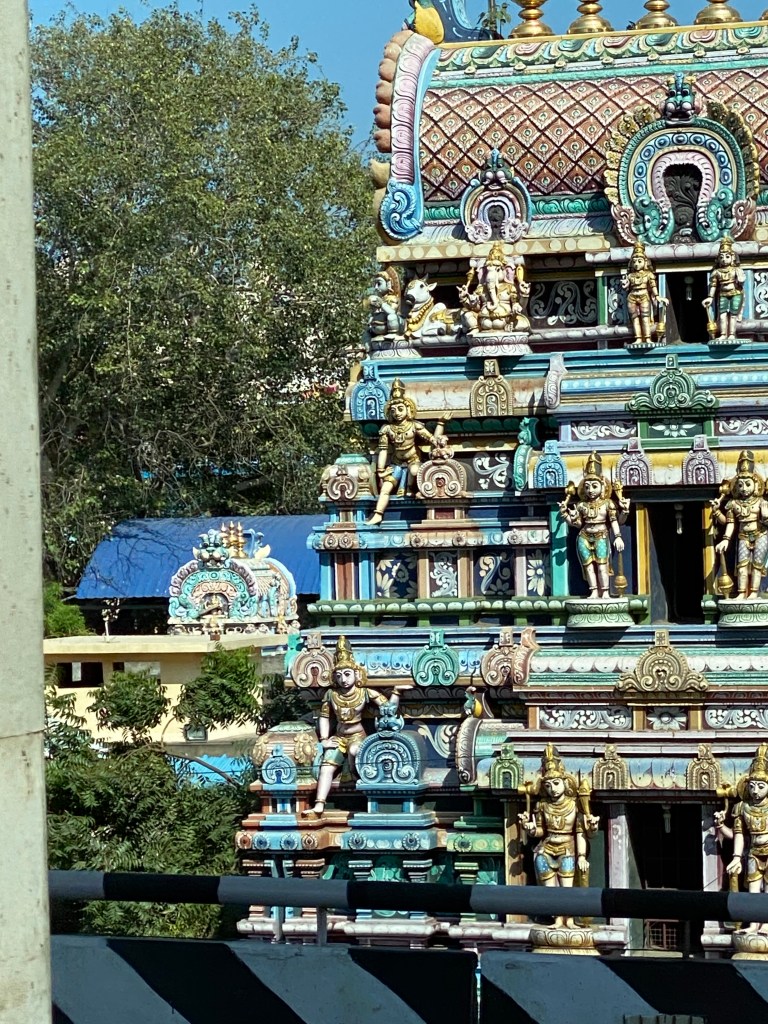 Desde que salimos del hotel empezamos a observar pequeños templos por todas partes, y cuando digo todas partes es así. Podíamos ver las partes más altas sobresalir detrás de casas y comercios, o en una esquina, o en el patio de estacionamiento de un condominio. En todas partes y en cualquier parte aparecían pequeñas edificaciones llenas de figuras, llenas de colores. Pregunté y la respuesta es, la PRACTICA de la religión es una actividad constante, diaria, varias veces al día. Es parte de la vida diaria, no implica ni espera por ocasiones especiales, de las cuales hay muchas y se celebran en grande.