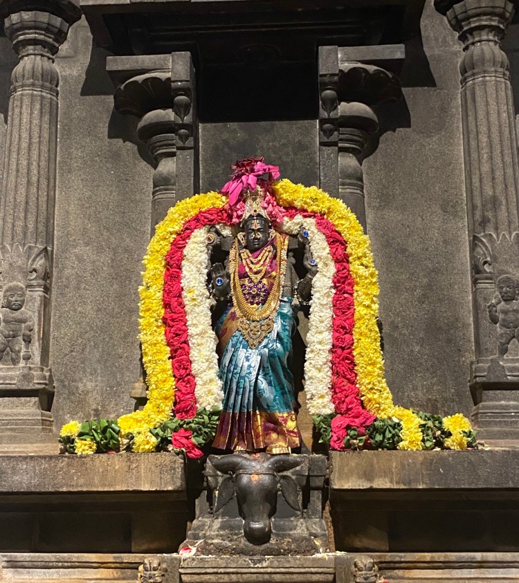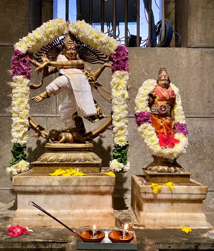 El linga está ubicado en el centro una especie de altar, delante está un pequeño monumento que marca del lugar donde está enterrado Sri Ramana y detrás hay una estatua dorada de Ramana sentado en posición de loto. Mientras la ceremonia ocurría, y en realidad todo el tiempo, la gente estaba dándole vueltas al altar. Un número impar de veces, en el sentido de las agujas del reloj, de manera que el objeto de veneración siempre esté a la derecha.