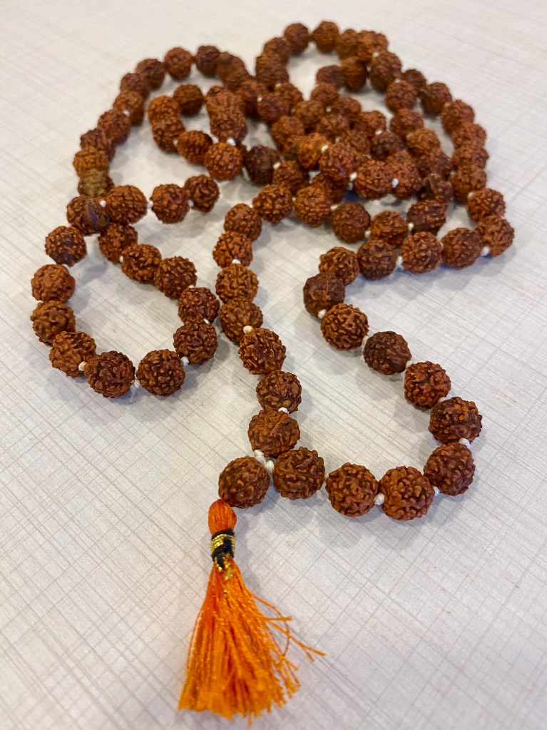 Rudraksha es una semilla muy utilizada para hacer malas y otros accesorios. Es considerada sagrada por los seguidores de Shiva quienes las usan como protección y para recitar mantras. Tiene un valor similar al de las piedras semipreciosas. Se considera que tiene efectos electromagnéticos beneficiosos para la salud ya que propicia la paz y la armonía en todos los planos. Apoya la práctica de la meditación. Me comentó Aura, una de mis compañeras, que ya ha estado varias veces en India, que hay semillas con distinto número de segmentos y que “quienes saben de eso”, le calculan a uno su numero personal. Lo siguiente es conseguir la rudraksha de esas características, supuestamente es de muy buena suerte. Lamentablemente no hubo oportunidad.