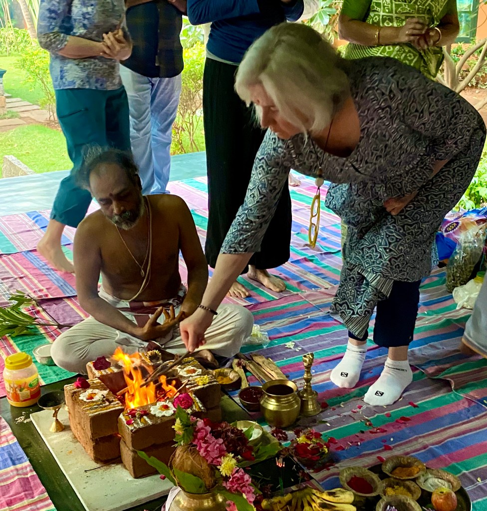 Amanecimos muy entusiasmadas porque en el hotel se iba llevar a cabo, especialmente para nuestro grupo, un Homam, o ceremonia del fuego . De mas está decir que no tenía idea de lo que iba a presenciar. Lo más cercano que había estado a una ceremonia con fuego había sido en el cierre de los retiros en silencio del Centro Chopra, Silent Awakenings y en el maravilloso taller del Dr David Simon, Free to Love, Free to Heal que hice en 2010.