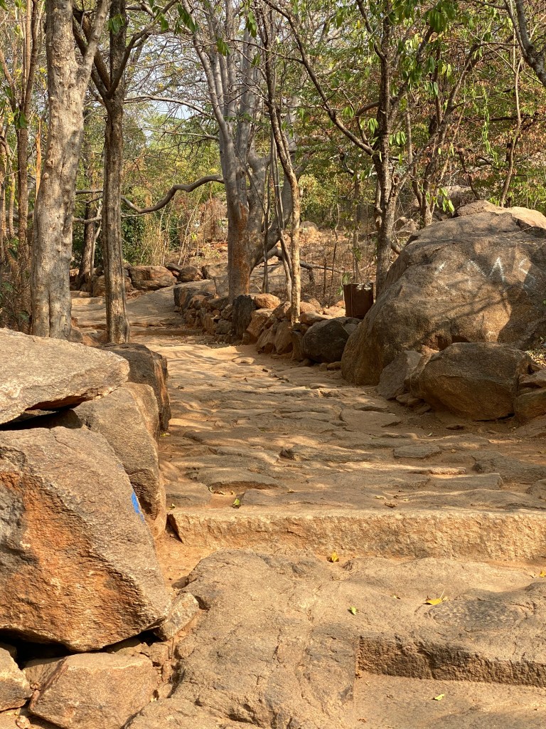 Como había decidido quedarme en el ashram estaba descalza, eso me hacía dudar, pero de todas formas avancé, pasé la entrada y caminé un poco. Me di cuenta de que desde allí, realmente no podía ver nada y decidí subir, otro poquito.