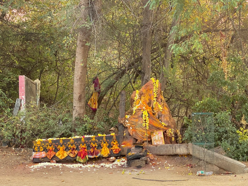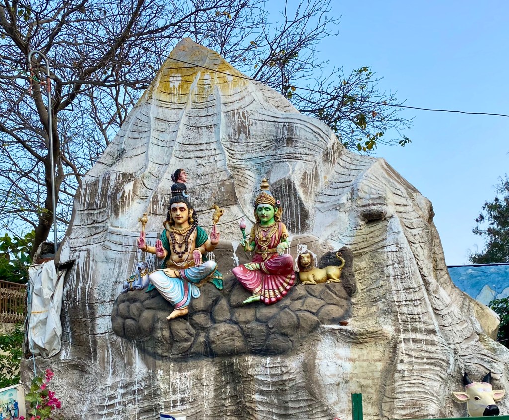 El autobús nos dejó frente a un pequeño templo, uno de los tantos que hay en la ruta alrededor de la montaña. En ese templo el ayudante de Mallika, el siempre sonriente Sekar, realizó su rito frente a la estatua de Ganesh.