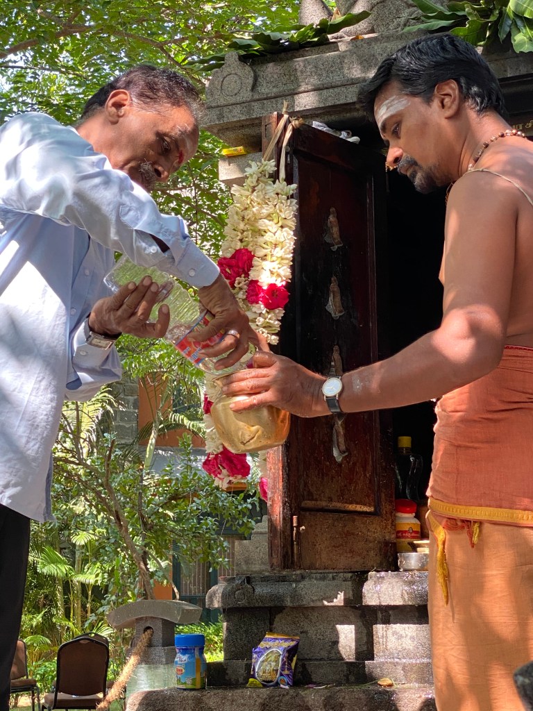 LO QUE APRENDI: Al ofrecer leche, se pide paz y felicidad, al ofrecer ghee se espera en retorno prosperidad. Los que quieren tener facilidad para expresarse o para cantar le ofrecen miel. La cúrcuma trae buena salud y con la ofrenda de frutas se pide lo que se quiera… El yogurt es para una buena vida familiar, el limón para la bondad y las cenizas para el conocimiento. La pasta de sándalo para una buena vida y finalmente el agua de rosas para la popularidad.