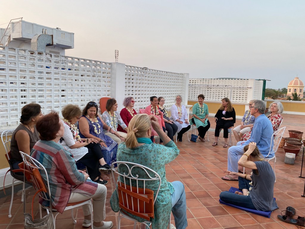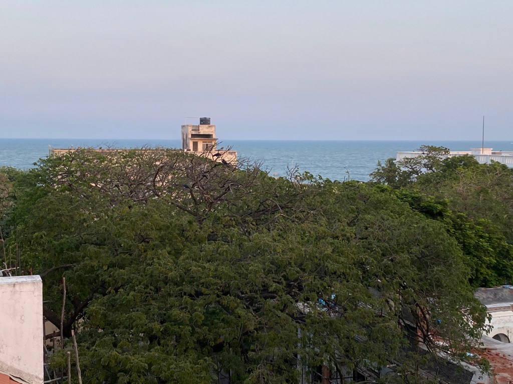 Era temprano y nos dio tiempo a deshacer las maletas, bañarnos y hacer una pausa. A las 6 nos encontramos en la terraza para meditar. Resultó ser un área muy agradable, con una brisa deliciosa y desde la cual podíamos ver el mar, la Bahía de Bengala.
