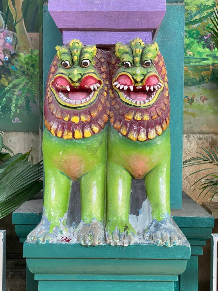 Frente a la entrada principal del templo, había una especie de antesala construida sobre la calle, techo alto y columnas. No era cerrada, era parte de una calle peatonal. Esta construcción la llaman Mandapa y estaba decorada con estatuas policromadas, grupos de estatuas pequeñas cerca del techo y mas grandes a la altura de la calle. También se veían pinturas de deidades en las paredes
