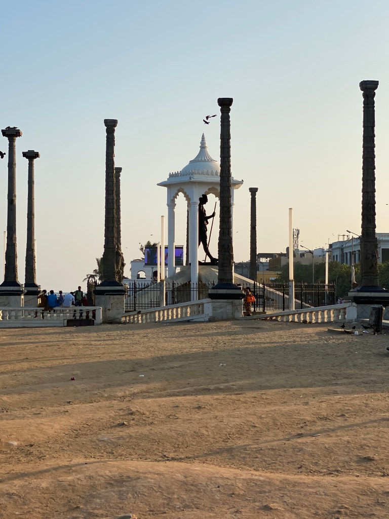La ubicación de Puducherry lo ha convertido en un destino turístico y por lo que podía ver, la ciudad ofrecía variedad de edificios coloniales, iglesias, templos y estatuas. Tenía como objetivo, además de pasear, llegar hasta el monumento a Gandhi que había visto al mediodía al pasar en ruta al Ashram.