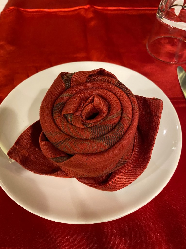 La cena nuevamente deliciosa, con detalles de decoración por el Día de los Enamorados. Esa noche podíamos escoger entre menú vegetariano o no vegetariano. Luego de cenar nos retiramos a preparar las maletas. Temprano, después de desayunar salíamos rumbo Tanjore.