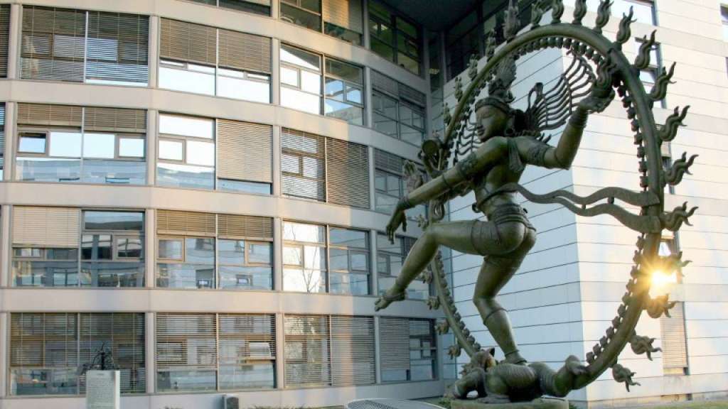 Esto ocurrió en 2004 y la pieza fue un regalo del gobierno de India al Centro Europeo de Investigación de la Física de la Partícula, CERN ubicado en Ginebra, Suiza. La estatua simboliza la danza cósmica de Shiva de creación y destrucción. Una placa con palabras de Fritjof Cabra en la base de la escultura, explica el significado de la metáfora de la danza cósmica de Shiva