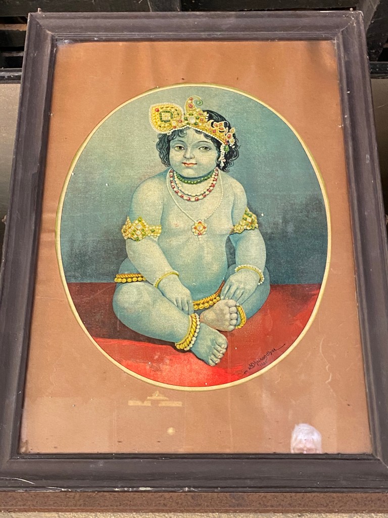 En el museo que acabábamos de visitar en Swamimalai, tenían un cuadro muy tierno de Krishna bebé y no pude evitar tomarle una foto.