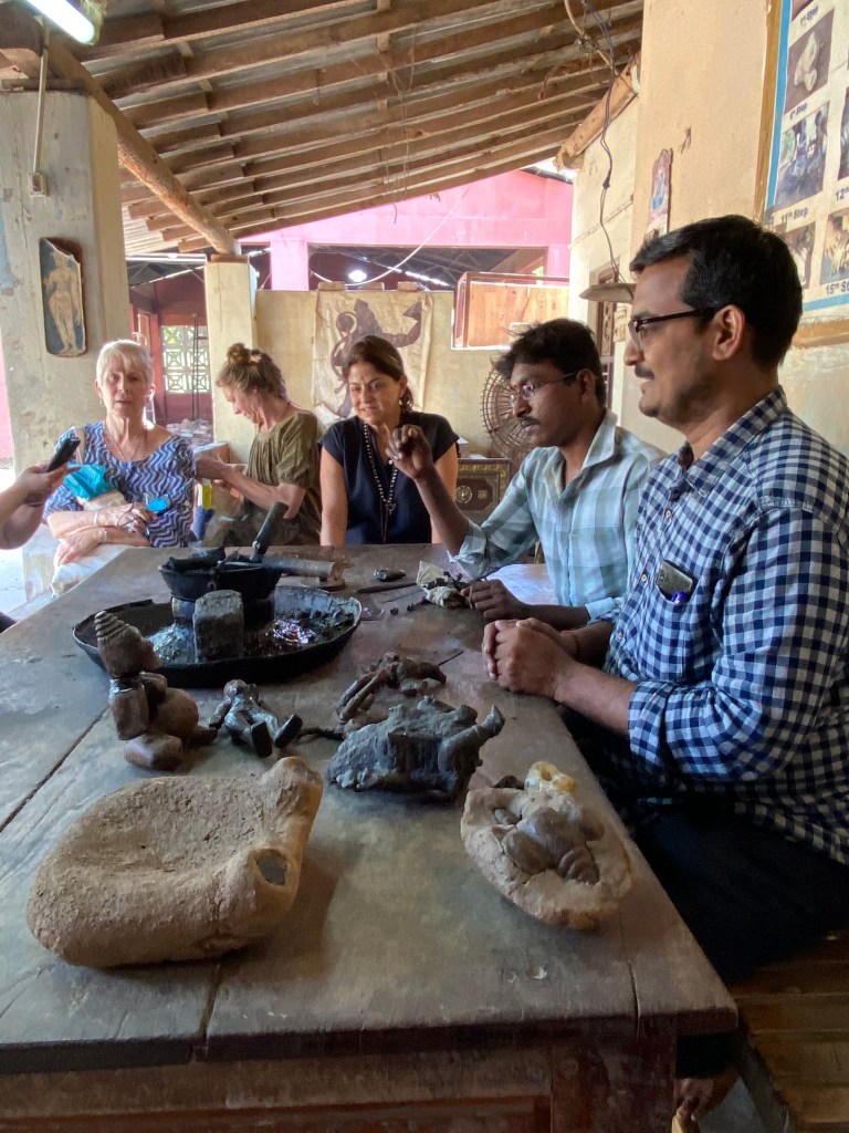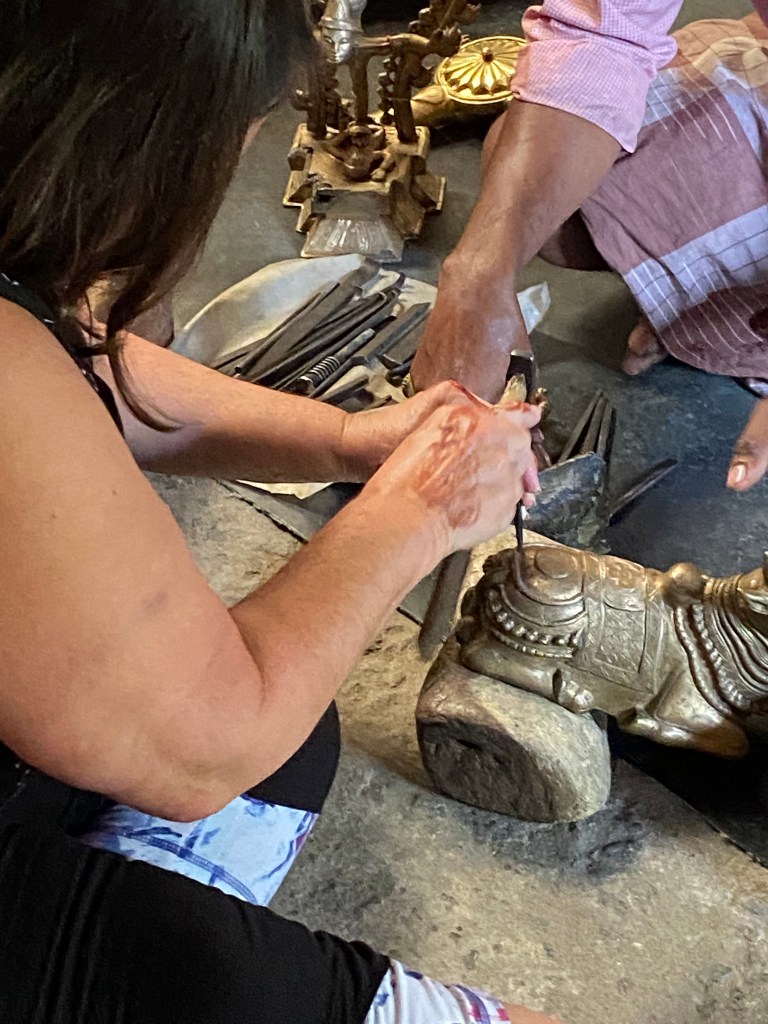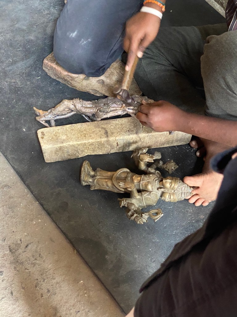 Mientras estuvimos viendo la parte de los hornos, Srinivasan, el maestro, nos comentó con mucho orgullo que había sido parte del equipo de sthapatis, -trabajadores del metal-, que hicieron, en ese taller, una escultura de 2 metros de alto de Nataraja, el Shiva danzante.