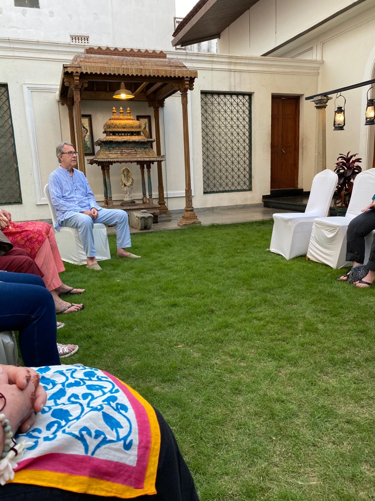 Luego de meditar en grupo en un jardín que quedaba en el centro del edificio patrimonial, tuvimos oportunidad de dar una vuelta por el hotel. Aproveché de pedirle al siempre sonriente Sekar que me tomara una foto. El lugar era lindo y yo estaba estrenando un kurta rojo que me había comprado en Chennai. Estaba yo muy creída de que estaba posando muy bien cuando Sekar, con cara de crítica me dijo “Do something!… Y no me quedó mas remedio que hacerle caso a mi fotógrafo, sin mucho éxito… Cómo extrañaba a mi fotógrafo favorito.