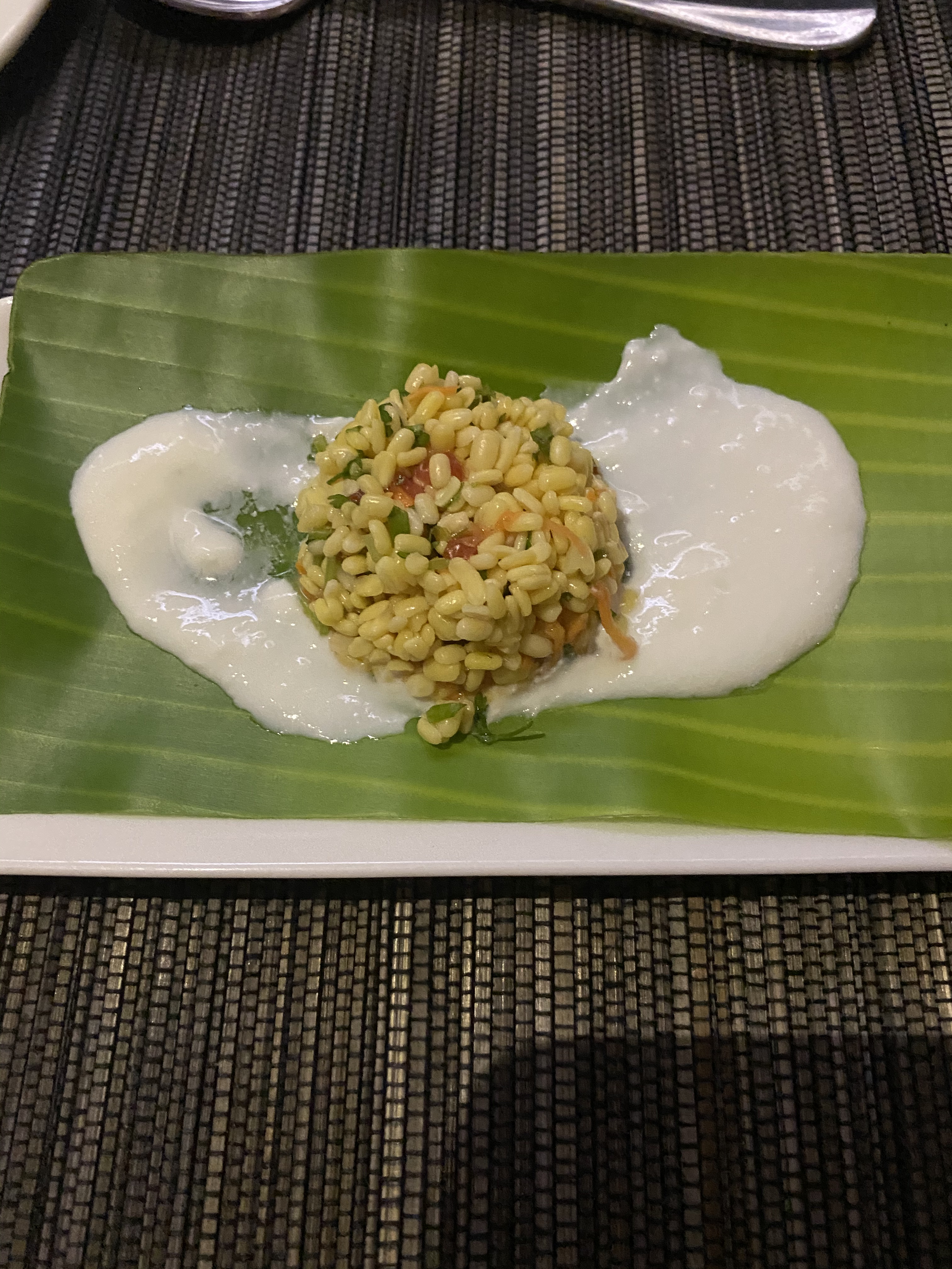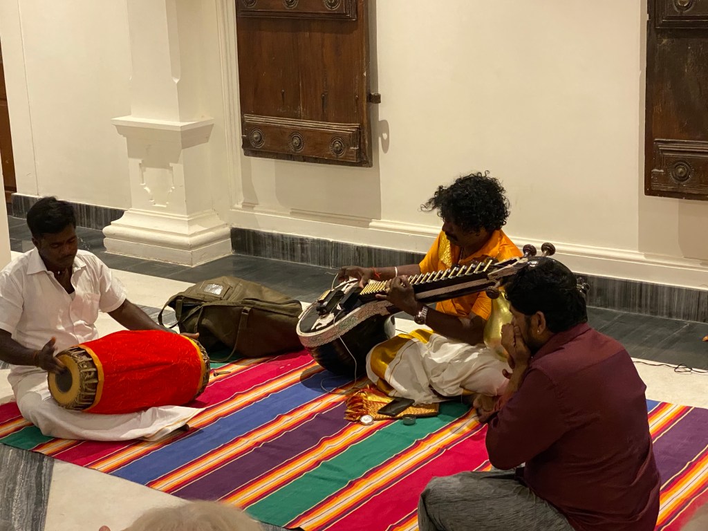 Nos invitaron a asistir a un pequeño concierto de música Karnática que se estaba llevando a cabo en otra zona del hotel. Sólo pudimos estar pocos minutos, nos estaban llamando para la cena. De todas formas fue muy interesante.