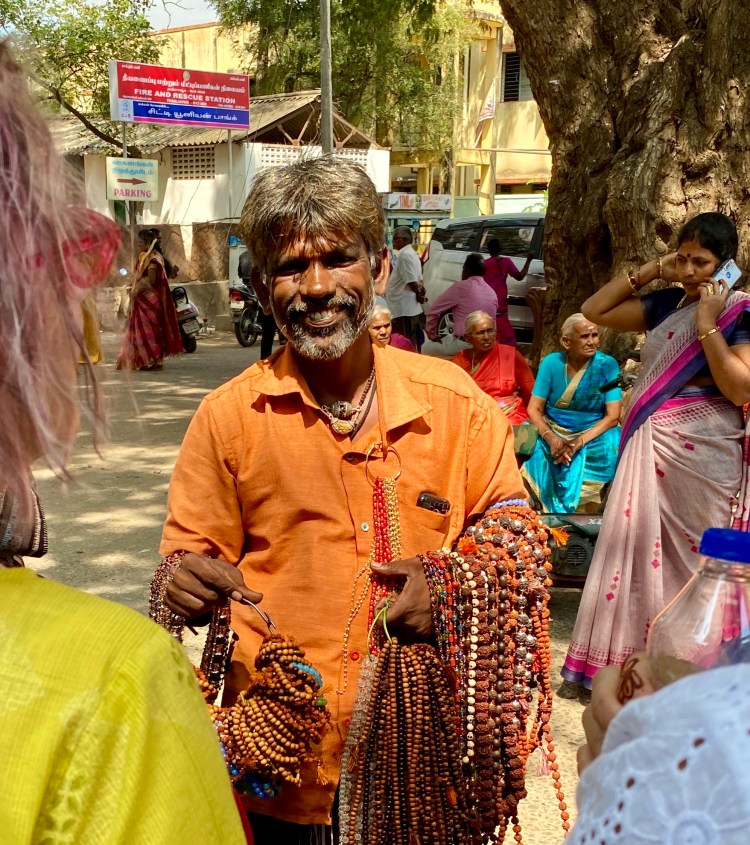 Acabábamos de visitar un lugar extraordinario, el Templo Brihadishwara. Yo estaba impresionada con las dimensiones y la belleza del lugar y con las historias que nos habían contado. Sobre todo estaba feliz por la oportunidad de compartir el espacio con tantos hindúes, en un lugar muy especial e importante para ellos y en lo que, para ventaja de nosotros como visitantes, también era una fecha importante.