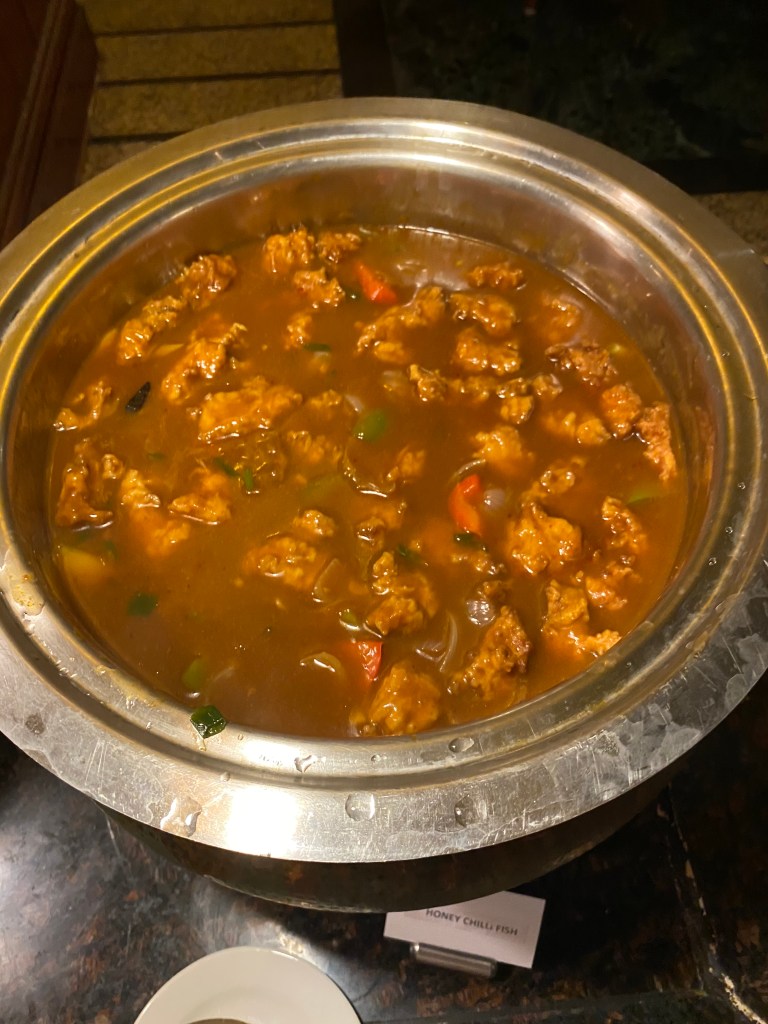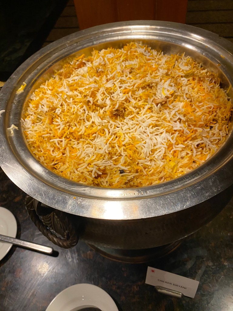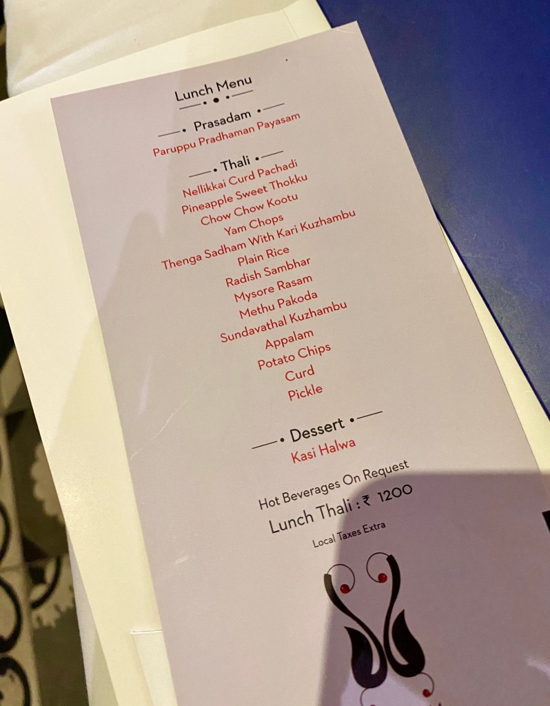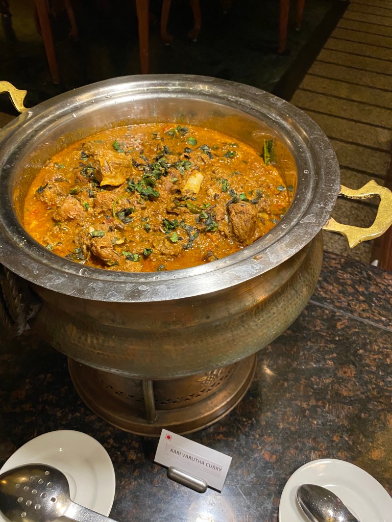 El postre, con un nombre muy bonito, Kasi Halwa, era el muy conocido Dulce de Cabello de Ángel en almíbar de azúcar. Antes de irme pedí conocer al chef. Esperé sólo instantes, una de las características de este restaurante es que la cocina se ve desde las mesas. Durei apareció sonriente. Le agradecí y me retraté con él y con Muthu, mi guía en la experiencia Thali.
