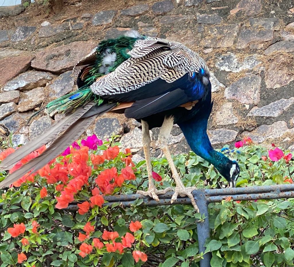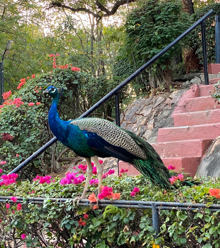 Las habitaciones estaban más abajo que el edificio de recepción y hacia allá nos dirigimos. En el camino nos encontramos unos hermosos pavo reales que se dedicaron a ignorarnos.