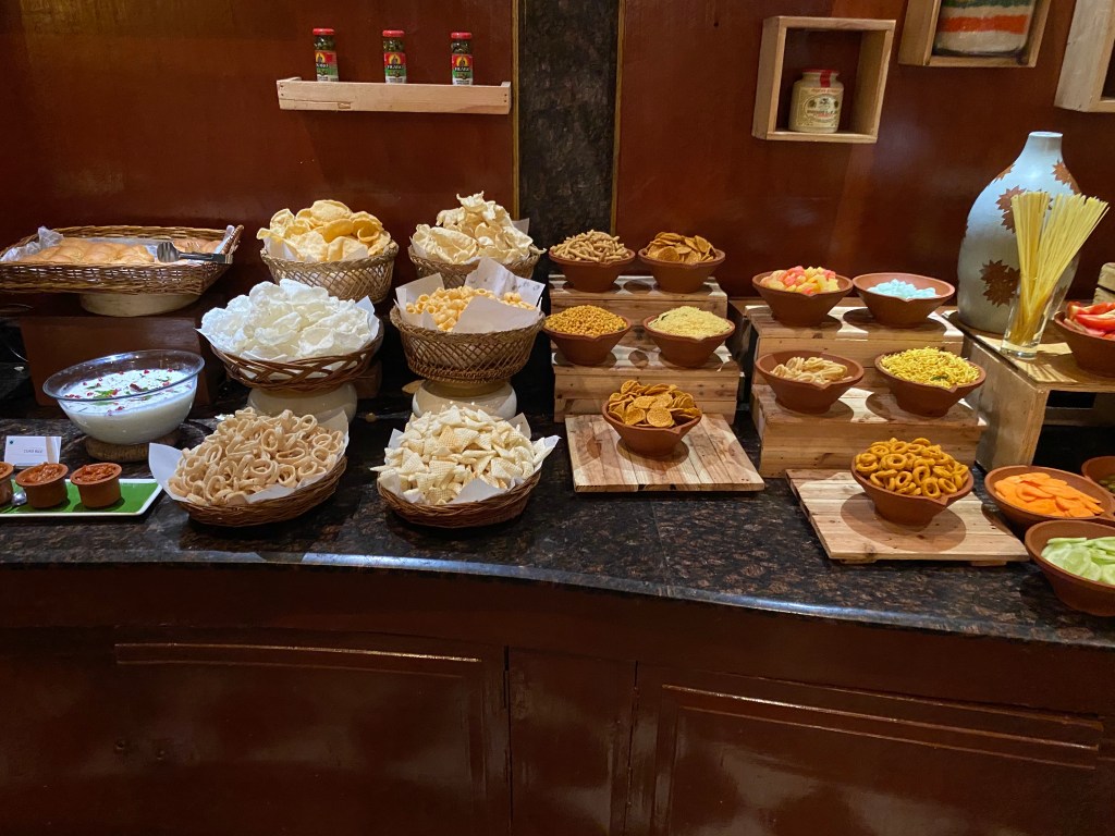 Disfrute mucho una fritura hecha con harina de garbanzo y cebolla y lo que se ve encima del arroz, el Appalam, que es una fritura, extremadamente ligera, muy sabrosa, adictiva, hecha con distintos tipos de harina condimentada. Yo lo bauticé “chicharrón vegetariano”.