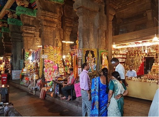 Después me enteré de que la prohibición de los celulares fue una decisión de la corte Suprema de Madras y se originó a raíz de un incendió que ocurrió en el templo en 2018. El incendió destruyó varias tiendas ubicadas dentro del templo y parte del de un gopuram. Se trataba de tiendas que vendían flores, ofrendas, malas e imágenes de deidades. Ultimamente también vendían objetos de plástico y esto fue lo que agravó el fuego.