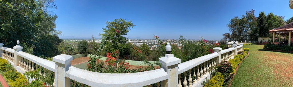 Nos reunimos en el restaurante para desayunar; de nuevo un buffet lleno de novedades. Había llegado temprano a desayunar así que mientras esperaba que el resto del grupo terminara y a que fuera hora de salir para la visita del Templo Sri Meenakshi, aproveché de tomar fotos de la ciudad y Renee me tomó una bella foto con Mallika en los jardines, frente al restaurant.