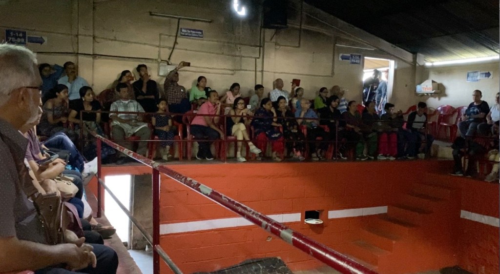 Al entrar nos dimos cuenta de que prácticamente éramos los últimos en llegar. Había música, dos filas de sillas plásticas acomodaban a los espectadores en un pasillo bastante angosto, que corría alrededor de un rectángulo con piso de cemento, el lugar donde iba a ocurrir la acción. El sitio estaba lleno y fue bastante incómodo llegar hasta nuestros puestos que estaban en primera fila y en una sección alejada de donde habíamos entrado.