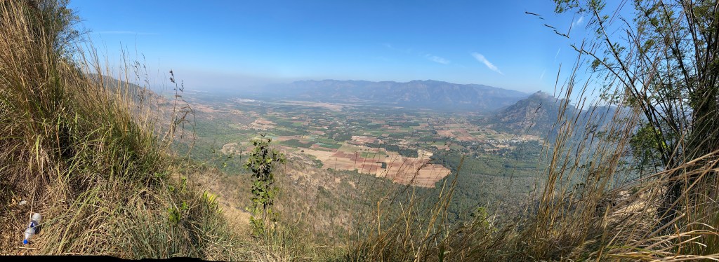 La primera parada fue en un mirador con una gigantesca cruz hecha en concreto. Desde allí pudimos disfrutar de una panorámica muy bonita de las Montañas Cardamón. Seguimos a otro mirador, en otro lado de la montaña y desde allí observamos el valle y la colcha de colores que formaban los campos sembrados con distintos productos. Al fondo también se distinguía una gran nube de contaminación. Regresamos al hotel transitando por un túnel vegetal muy agradable y fresco.