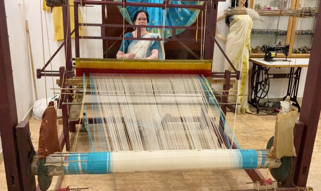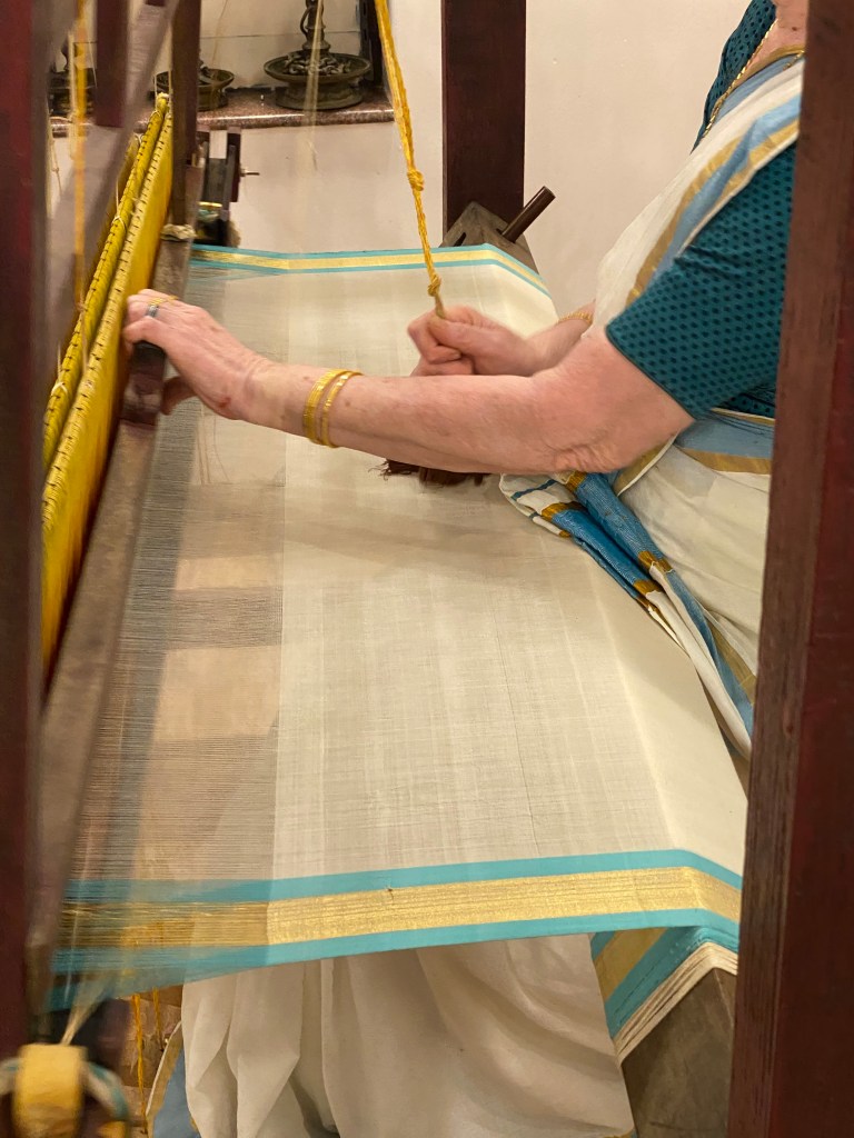 Salimos rumbo Cochin. Una ciudad con herencia portuguesa, holandesa, china, india y judía. Al entrar a Cochin hicimos una breve parada en una tienda de textiles y artesanías. Yo me entretuve tomando fotos al exterior de la casa y a los objetos que tenían expuestos allí. Apenas entré por unos momentos y la cantidad y variedad de cosas que había en la tienda me paralizaron y sólo me dediqué a observar el trabajo del telar que tenían en el segundo piso.