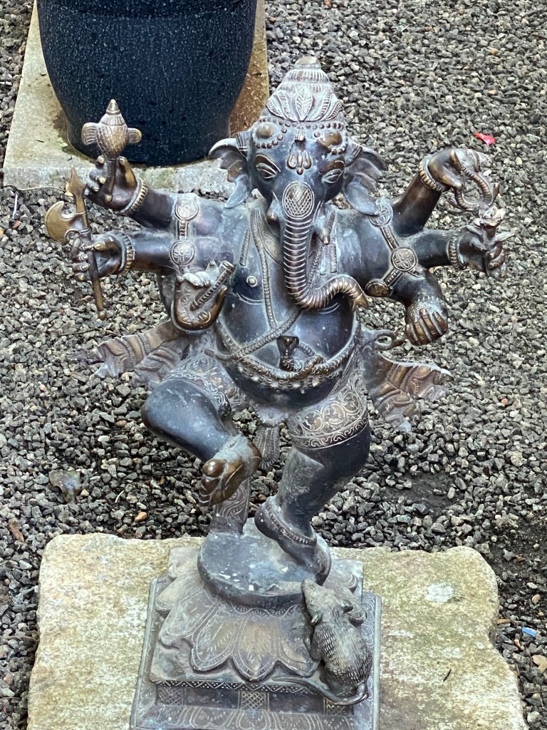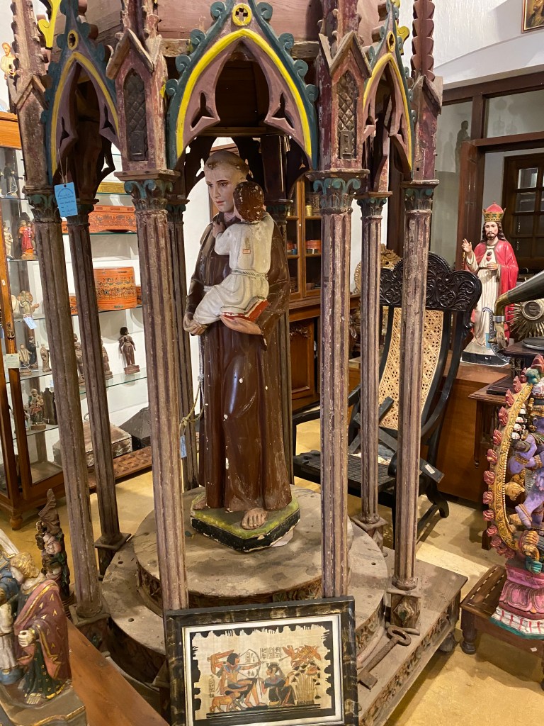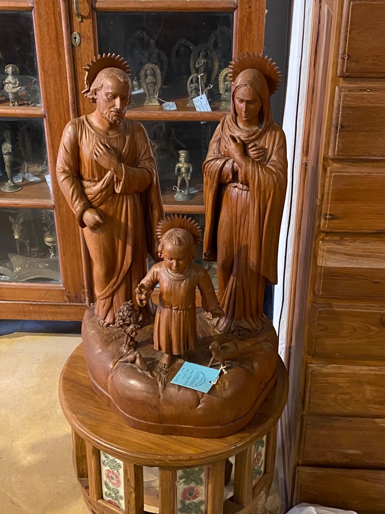 Entré a lo que era una galería que comunicaba las dos calles. Allí encontré entre otras cosas, un par de cafés y una tienda de antigüedades, con una mezcla hermosa de figuras Indúes y católicas. San Antonio ocupaba, junto a Ganesh, lugar preferencial. Había nacimientos, vírgenes, santos, y todo tipo de deidades hindúes.