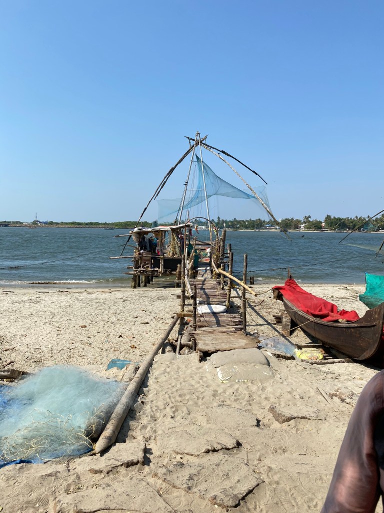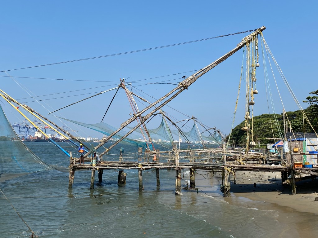 LO QUE APRENDI: Averiguando encontré que este sistema de redes fue introducido por los exploradores chinos que llegaron al área en el siglo XIV. Está formado por curiosas estructuras que están fijas en la tierra y que, mediante un juego de equilibrios de peso, permite introducir las redes en el mar y sacarlas con relativamente poco esfuerzo.